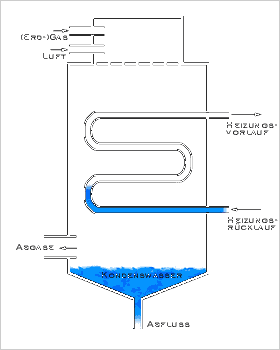 Das im Brenner aufgeheizte Wasser zirkuliert mit Hilfe einer Pumpe im Heizkreis. Die bei der Verbrennung entstehenden Abgase werden im Wärmetauscher mit Hilfe des kalten Rücklaufes soweit abgekühlt bis das im Abgas enthaltene Wasser kondensiert. Die hierbei freigewordene Wandlungsenergie wird vom Rücklauf aufgenommen und dem Heizkreis zugeführt.