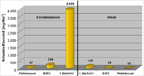 Vergleicht man nun die anfallenden Emissionen moderner Pelletsfeuerungen mit den gesetzlichen Anforderungen, so wird schnell der hohe technische Standard deutlich