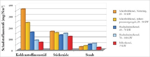 Emissionen von verschiedenen Holzzentralheizungsan
